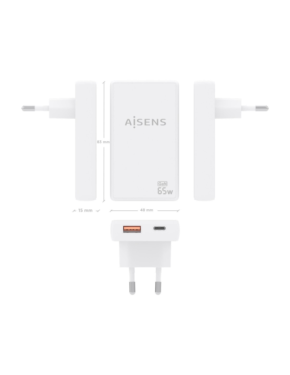 CARGADOR AISENS GAN PARED ULTRA DELGADO 65W USB-C PD3.0 QC4.0 USB-A QC3.0