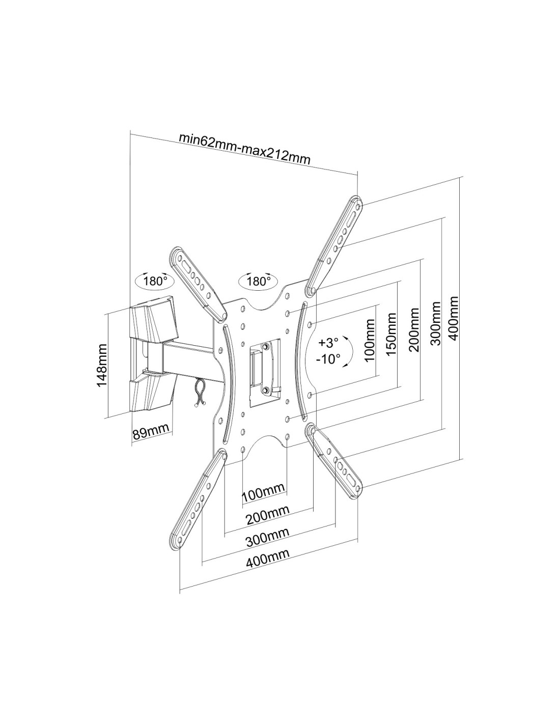 | Contenido del paquete | 1x Soporte de pared para monitor/TV 1x Kit de montaje (No incluye herramientas) 1x Manual de instrucciones multi idiomas |
