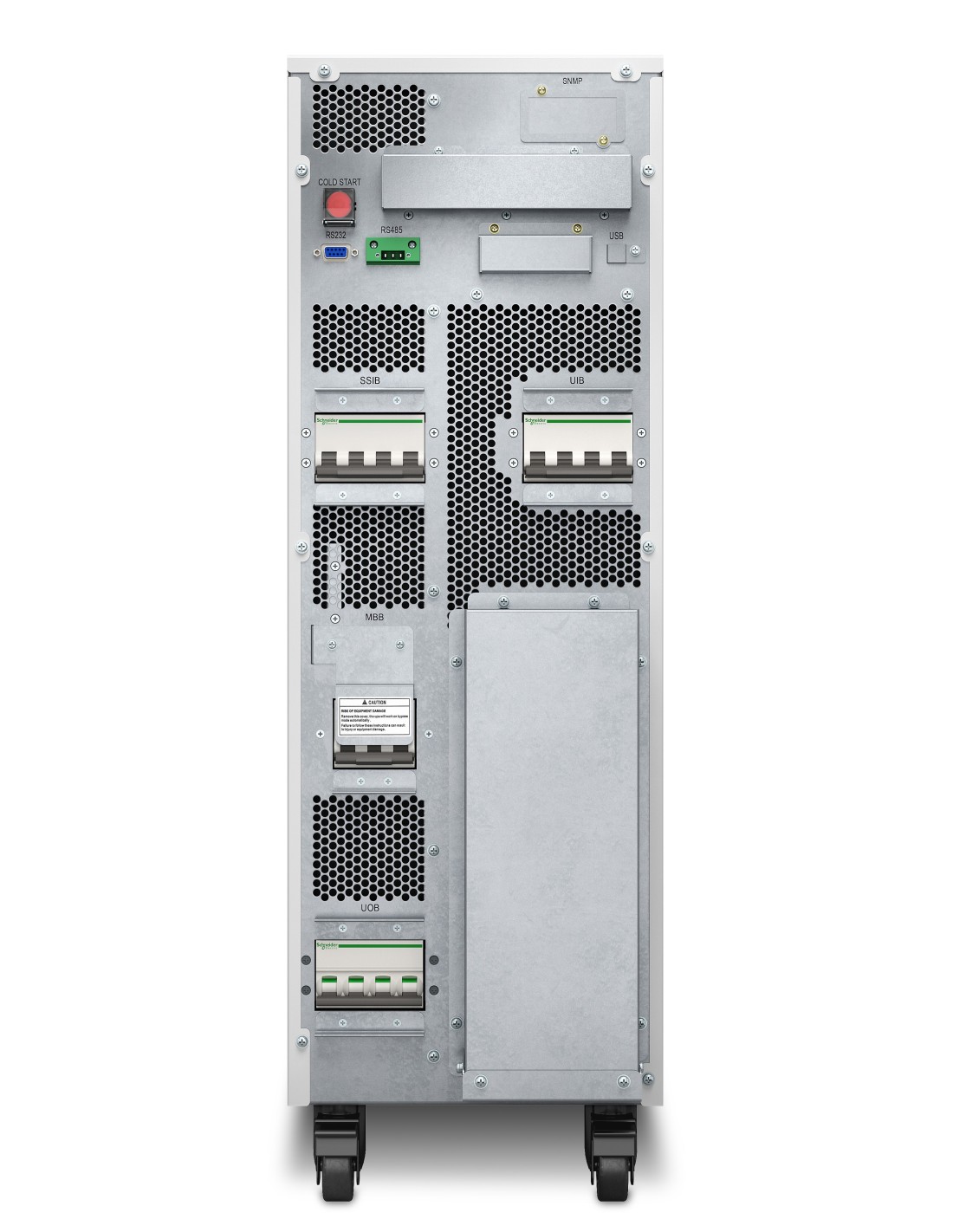 APC Easy 3S. Topología UPS: Doble conversión (en línea), Capacidad de potencia de salida (VA): 30 kVA, Potencia de salida: 30000 W. Factor de forma: Torre, Color del producto: Blanco, Tipo de visualizador: LED. Ancho: 250 mm, Profundidad: 800 mm, Altura: 770 mm. Voltaje de salida: 400 V