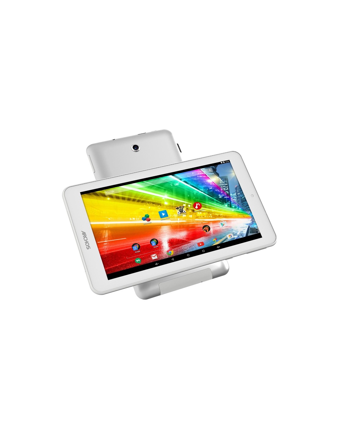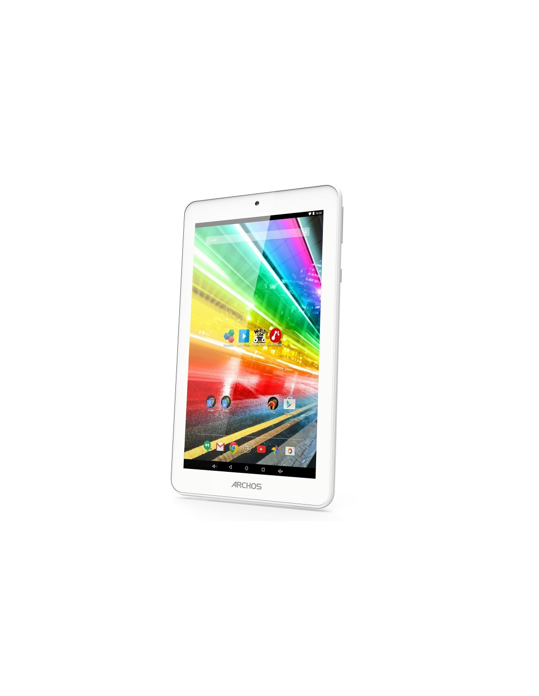 Archos Platinum 70. Diagonal de la pantalla: 17,8 cm (7"), Resolución de la pantalla: 1024 x 600 Pixeles, Tecnología de visualización: IPS. Capacidad de almacenamiento interno: 16 GB. Frecuencia del procesador: 1,3 GHz, Familia de procesador: Mediatek, Modelo del procesador: MT8321. Memoria interna: 1 GB. Resolución de la cámara trasera (numérica): 2 MP, Resolución de la cámara frontal (numérica): 2 MP. Estándar Wi-Fi: Wi-Fi 4 (802.11n). Tarjeta de lectura integrada. Peso: 350 g. Sistema operativo instalado: Android 6.0. Color del producto: Blanco