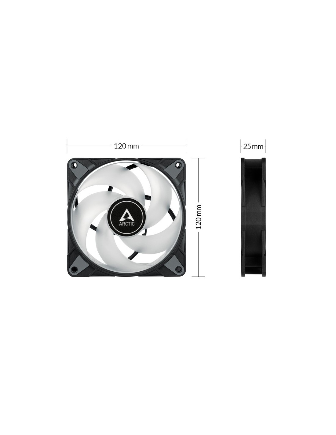 ARCTIC P12 PWM PST A-RGB 0dB Carcasa del ordenador Ventilador 12 cm Negro, Blanco 1 pieza(s)