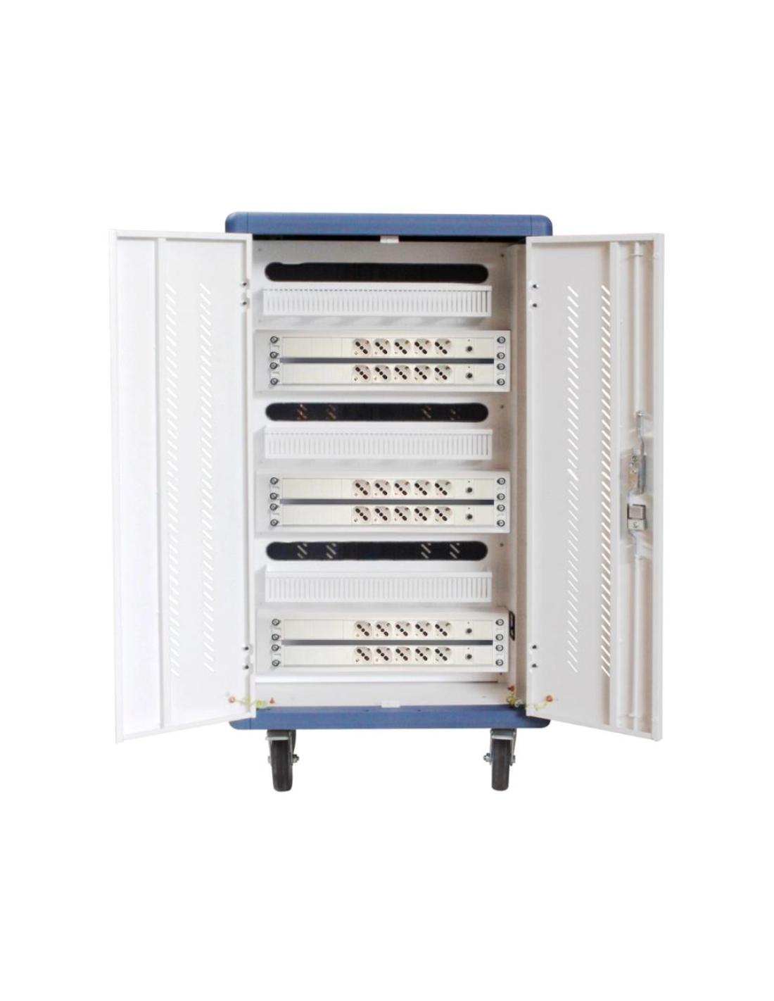 Armario rack de seguridad phask montado con ruedas goma - 30 compart. para portatil - tablet y smartphone branco - azul
