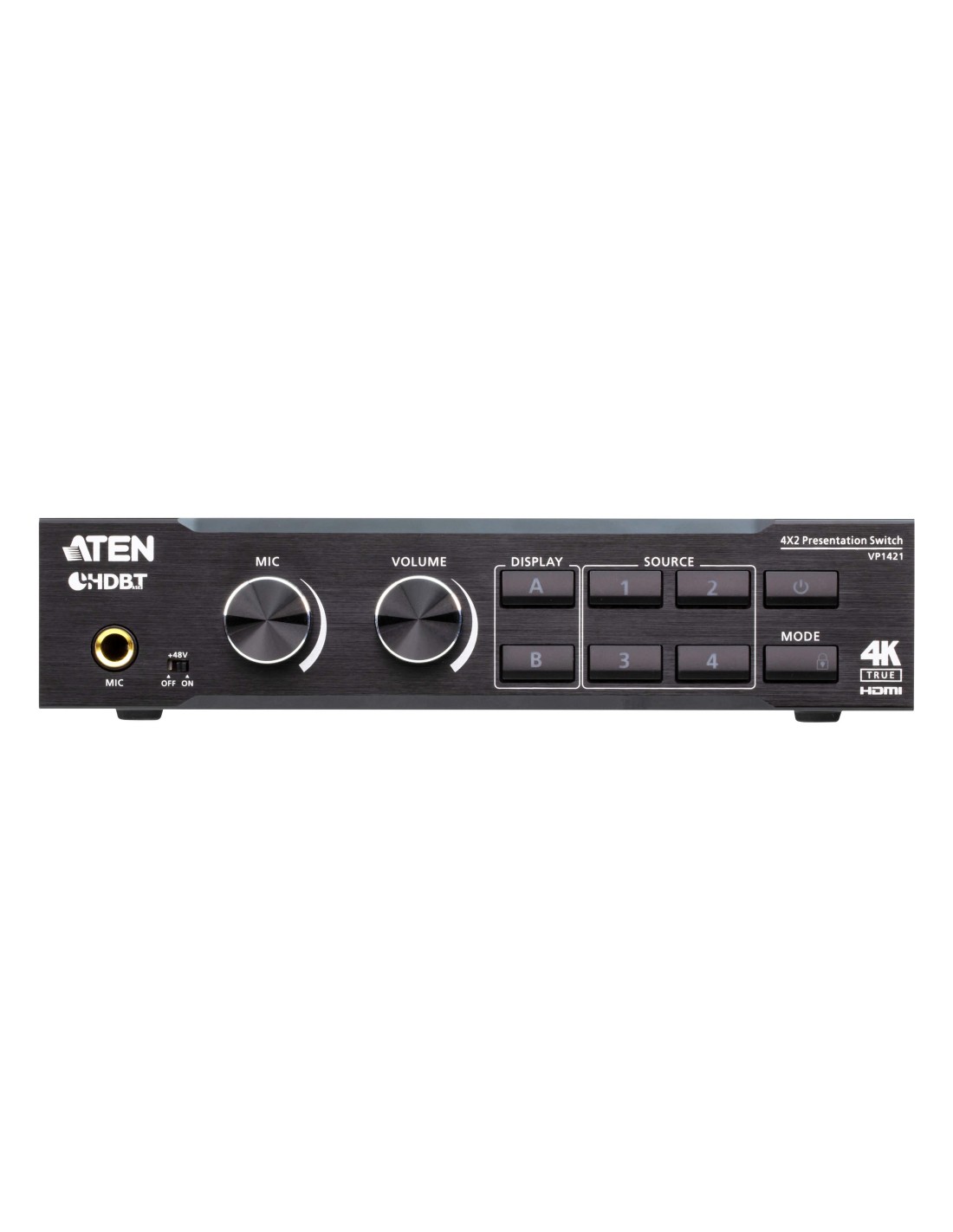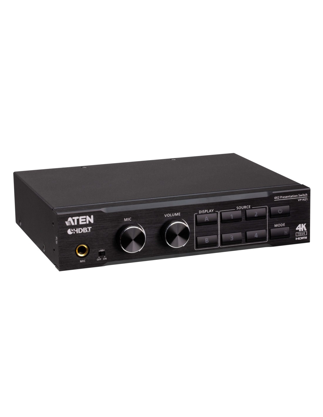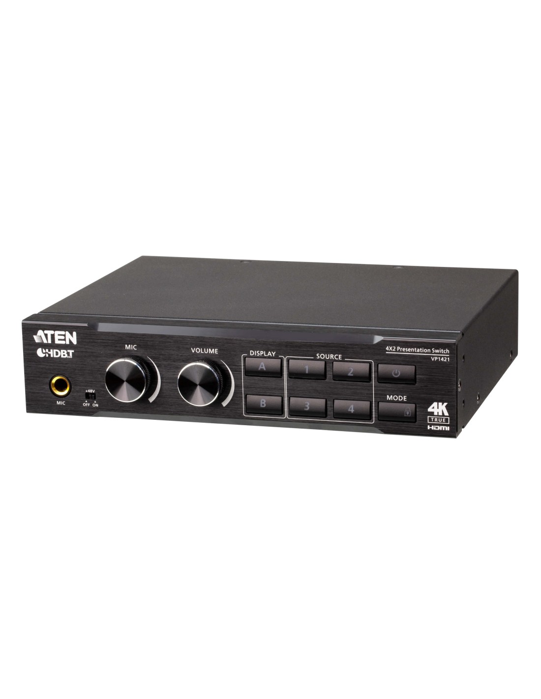 ATEN Switch de presentación True 4K 4 x 2 con escalador de vídeo, DSP y HDBaseT-Lite