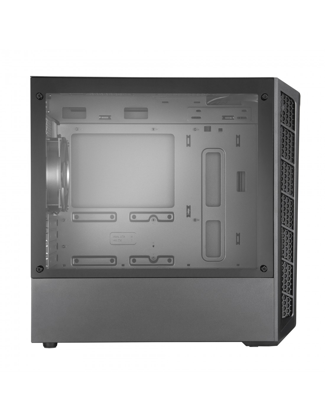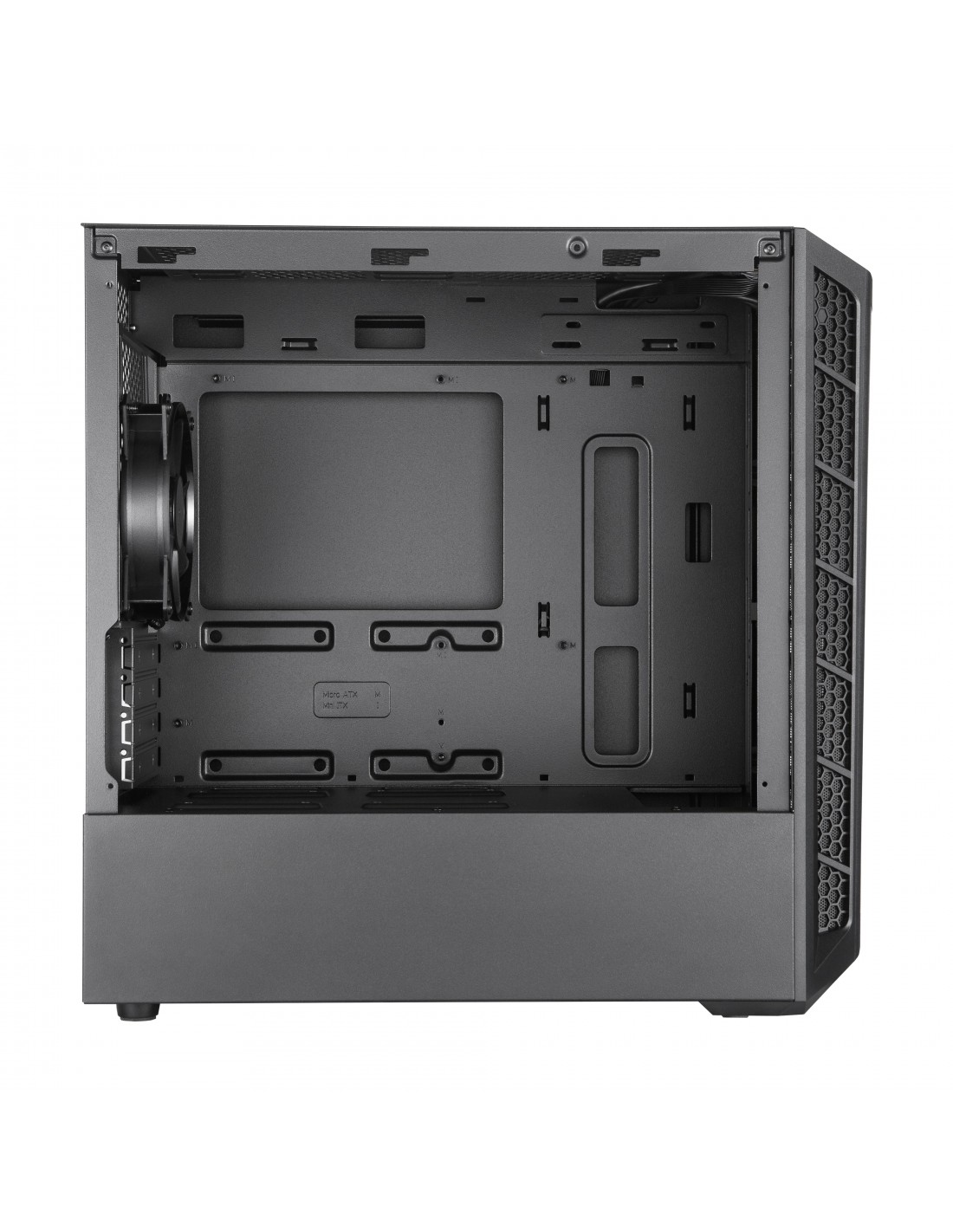 Cooler Master MasterBox MB311L. Factor de forma: Mini Tower, Tipo: PC, Material: Malla, De plástico, Vidrio templado. Ubicación de fuente de alimentación: Fondo, Factores de forma de la fuente de alimentación compatibles: ATX. Diámetro de ventiladores frontales soportados: 120,140 mm, Ventiladores traseros instalados: 1x 120 mm, Diámetro de ventiladores traseros soportados: 120 mm. Tamaños de disco duro soportados: 2.5,3.5". Ancho: 217,5 mm, Profundidad: 435,5 mm, Altura: 410 mm