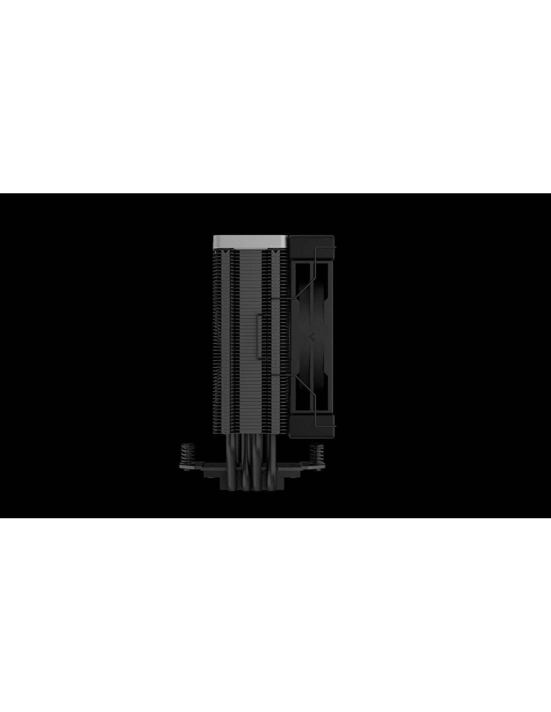 DeepCool AK400 ZERO DARK. Tipo: Refrigerador de aire, Diámetro de ventilador: 12 cm, Velocidad de rotación (mín.): 500 RPM, Velocidad de rotación (máx.): 1850 RPM, Nivel de ruido (alta velocidad): 29 dB, Máximo flujo de aire: 66,47 cfm, Presión máxima de aire: 2,04 mmH2O, Tipo de soporte: Rodamiento dinámico fluido (FDB). Ancho: 127 mm, Profundidad: 155 mm, Altura: 97 mm. Color del producto: Negro