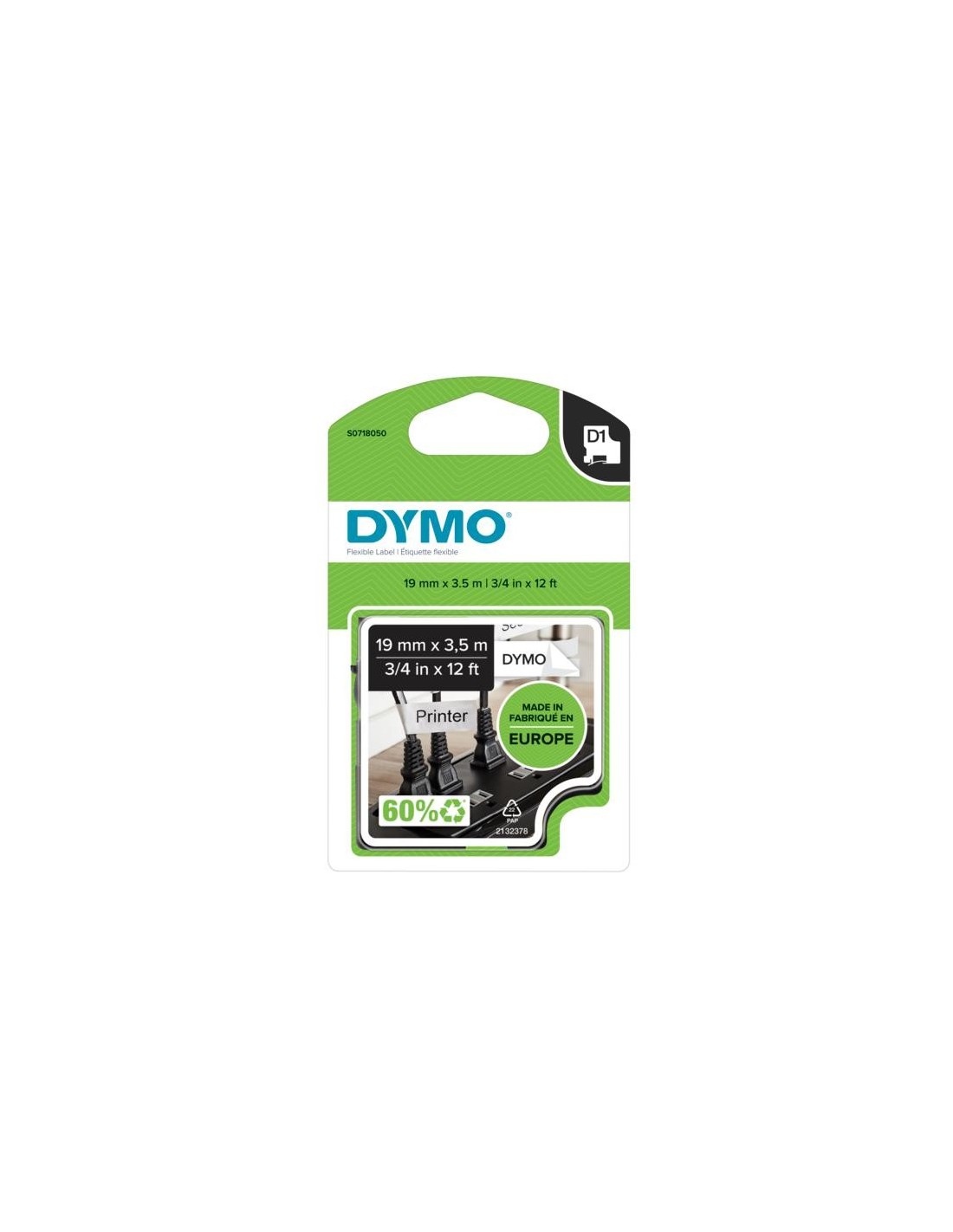 DYMO D1 - Etiquetas Durable - Negro sobre blanco - 12mm x 5.5m