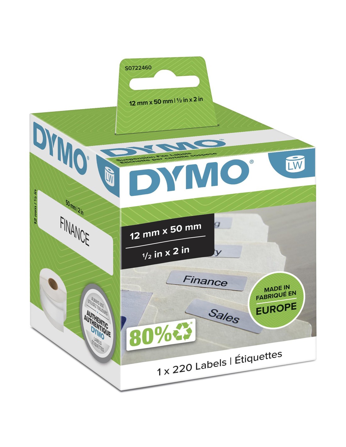 DYMO LW - Etiquetas para archivadores suspendidos - 12 x 50 mm - S0722460