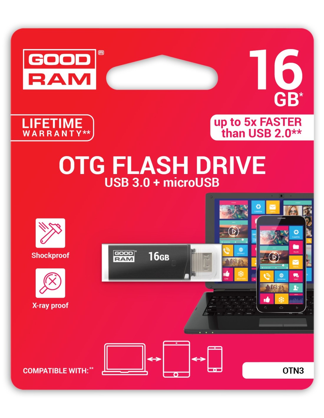 Goodram 16GB USB 3.0 unidad flash USB USB Type-A / Micro-USB 3.2 Gen 1 (3.1 Gen 1) Negro