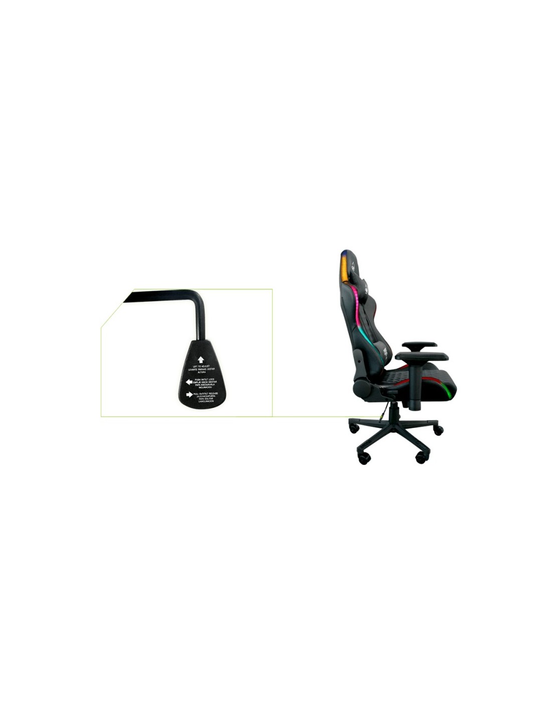 KeepOut XSPRO-RGB. Tipo de producto: Butaca para jugar, Plataformas de juego soportadas: PC, Peso máximo del usuario: 120 kg. Altura del asiento (mín.): 123 cm, Altura del asiento (máx.): 132 cm, Ancho: 690 mm. Ancho del paquete: 650 mm, Profundidad del paquete: 320 mm, Altura del paquete: 830 mm