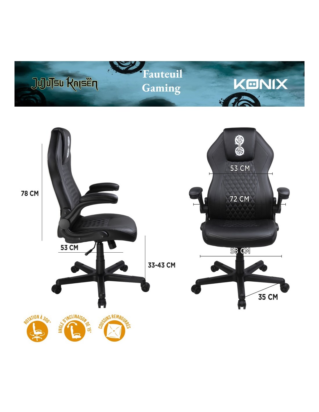 Silla Gamer Konix Jujutsu Kaisen Gran Comodidad Y Ergonomia Clase 4 / 100 Mm Color Blanco Y Negro