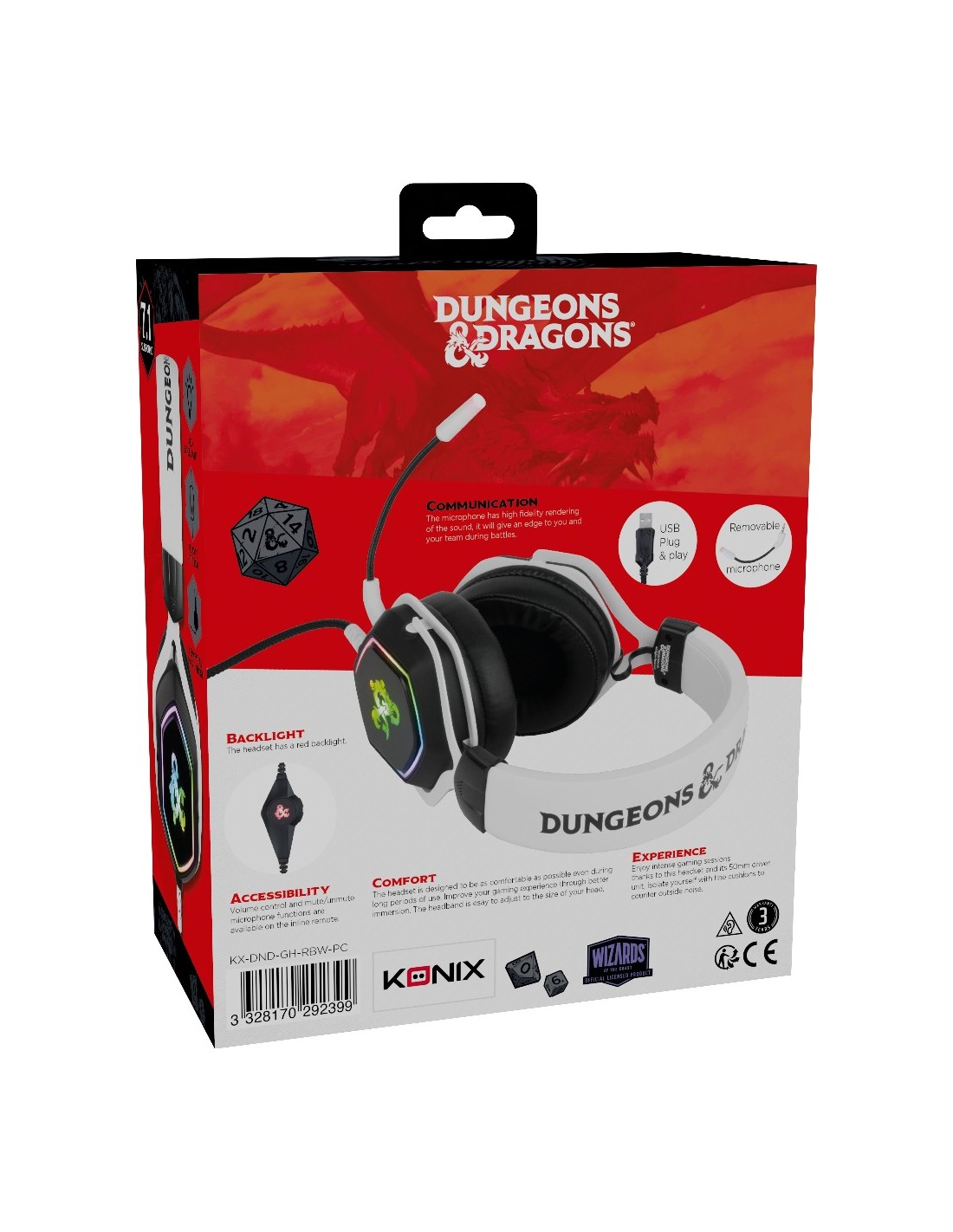 Konix 82381120335 auricular y casco Auriculares Alámbrico Diadema Juego USB tipo A Negro, Blanco