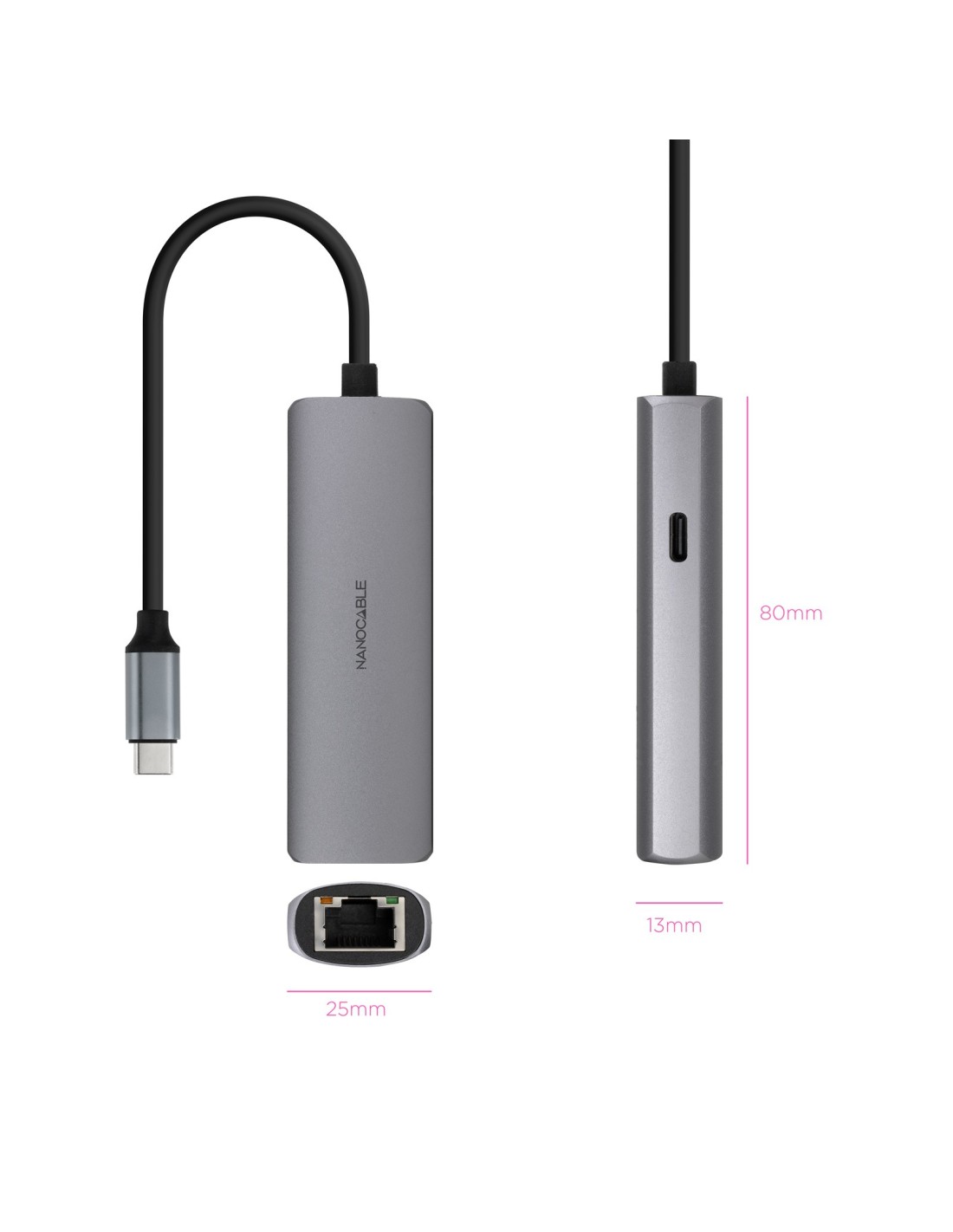 Nanocable Conversor USB-C Ethernet carga PD
