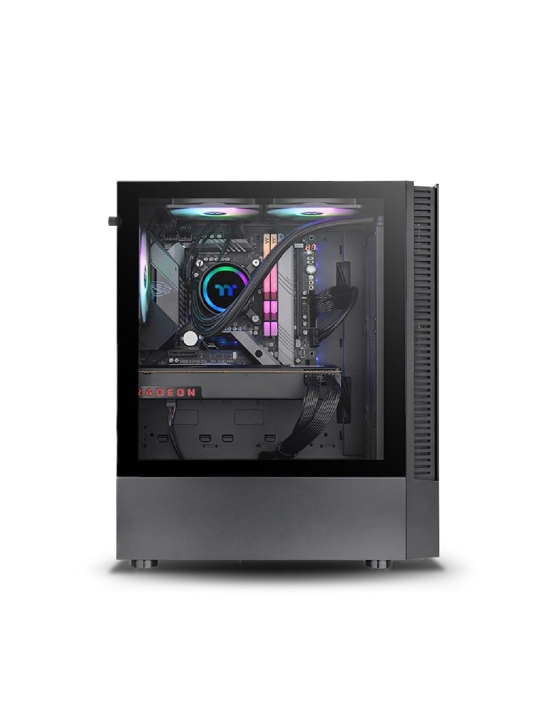 La Thermaltake View 200 TG Black es la carcasa que da forma y protege el corazón del PC Gaming Última Advance. Con un tamaño estándar consigue aportar la mejor ventilación y durabilidad a los componentes.