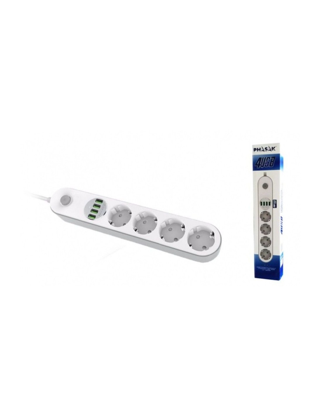 Phasak PH 0544 limitador de tensión Blanco 4 salidas AC 230 V 2 m