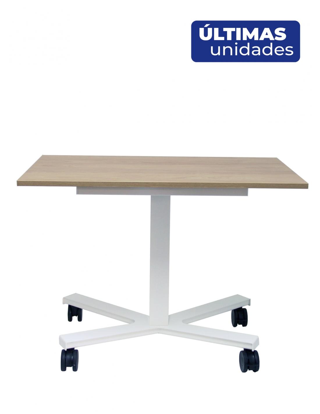 Piqueras y Crespo Mesa Griego regulable color natural, estructura blanca y ruedas.
