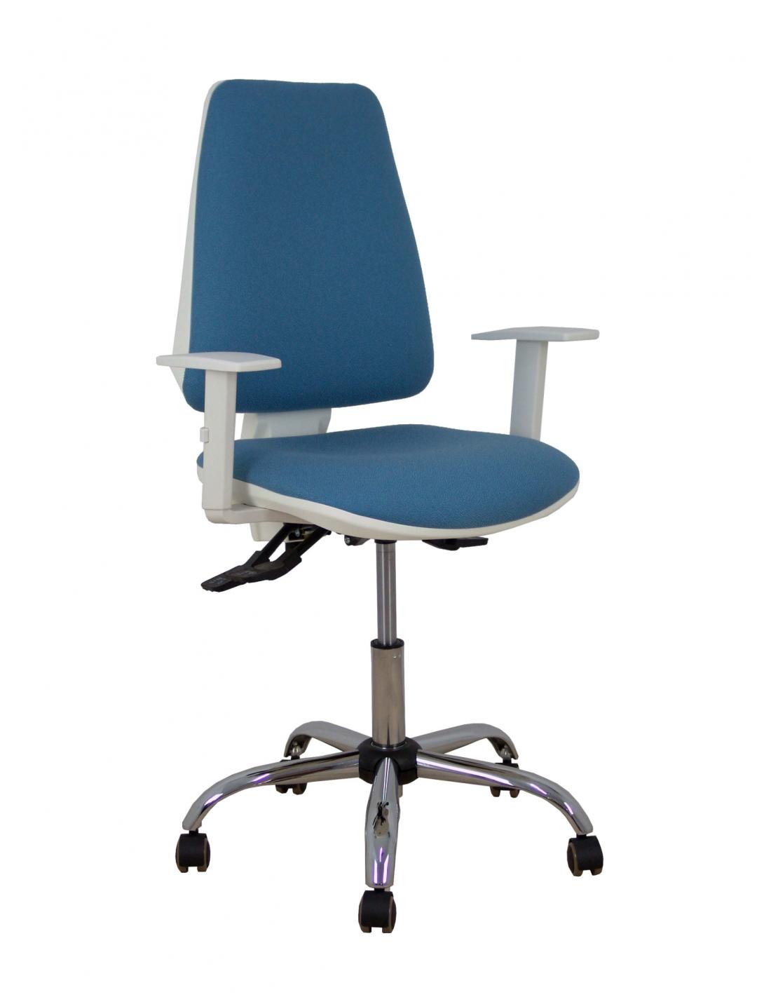 Piqueras y Crespo Silla Elche blanca asincro bali azul cielo brazos regulables ruedas de parqué