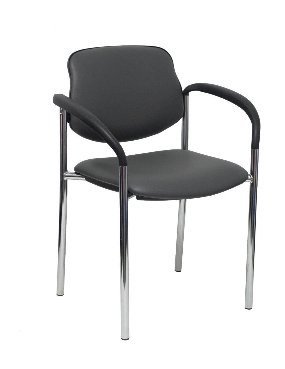 Piqueras y Crespo Silla fija Styl similpiel gris oscuro chasis cromo con brazos