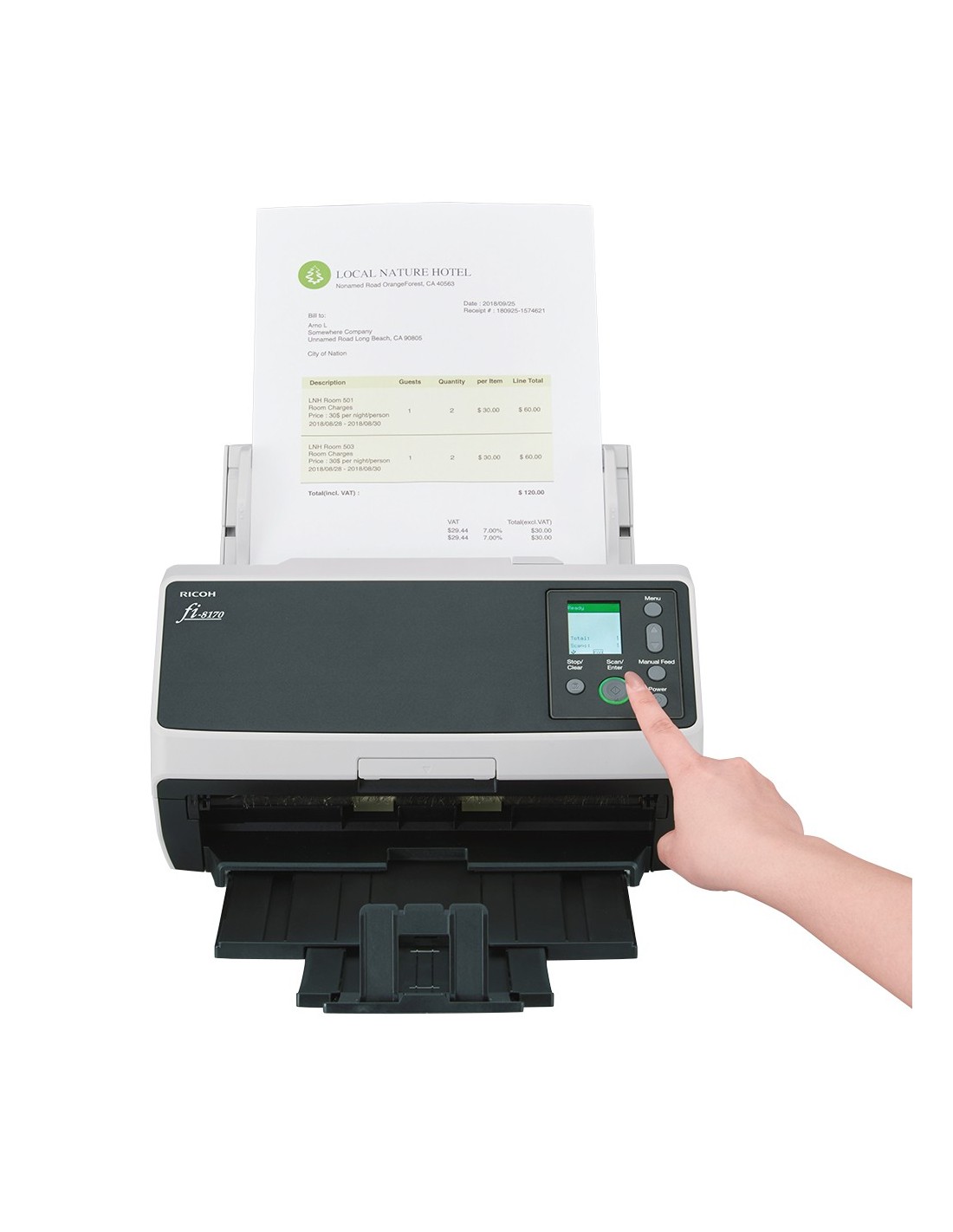 | Tipo de escaneado | Alimentador automático de documentos (ADF) + escáner de alimentación manual |