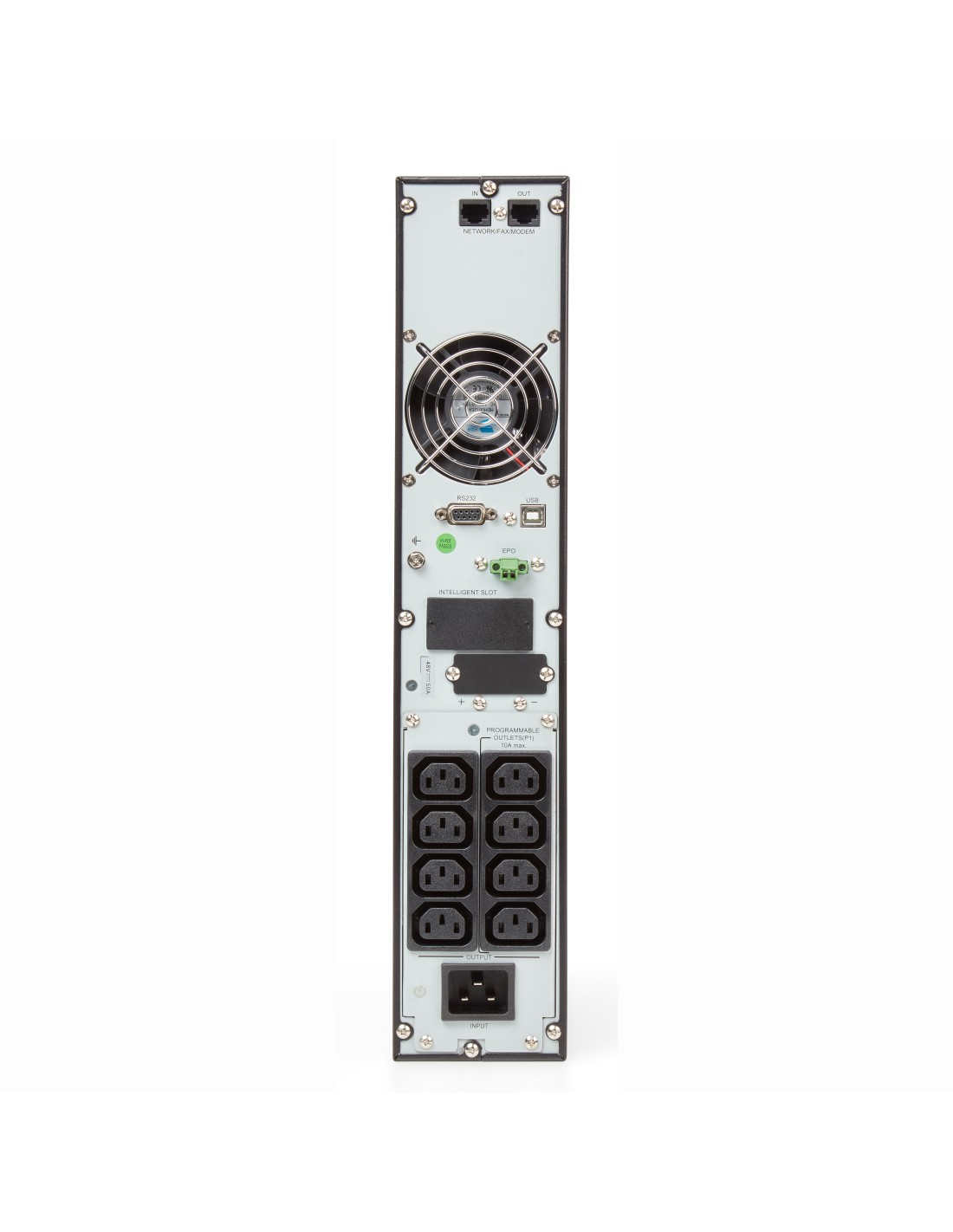 Con una gama de potencias que cubre desde los 700 VA(W) hasta los 10.000 VA(W), se presenta en formato rack de 2U (hasta 3 kVA) o 4U, convertible a formato torre, con la pantalla LCD orientable, según necesidades de la instalación. Asimismo, dispone de soluciones con cargador extra y módulos adicionales de baterías para aquellas aplicaciones que requieran de mayor back-up de respaldo.