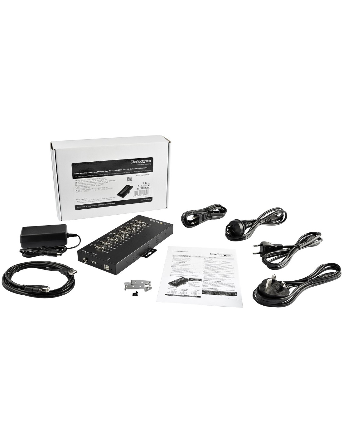 StarTech.com Adaptador industrial usb a 8 puertos serie DB9 RS232 RS422 RS485 con proteccion esd de 15kV negro ICUSB234858I