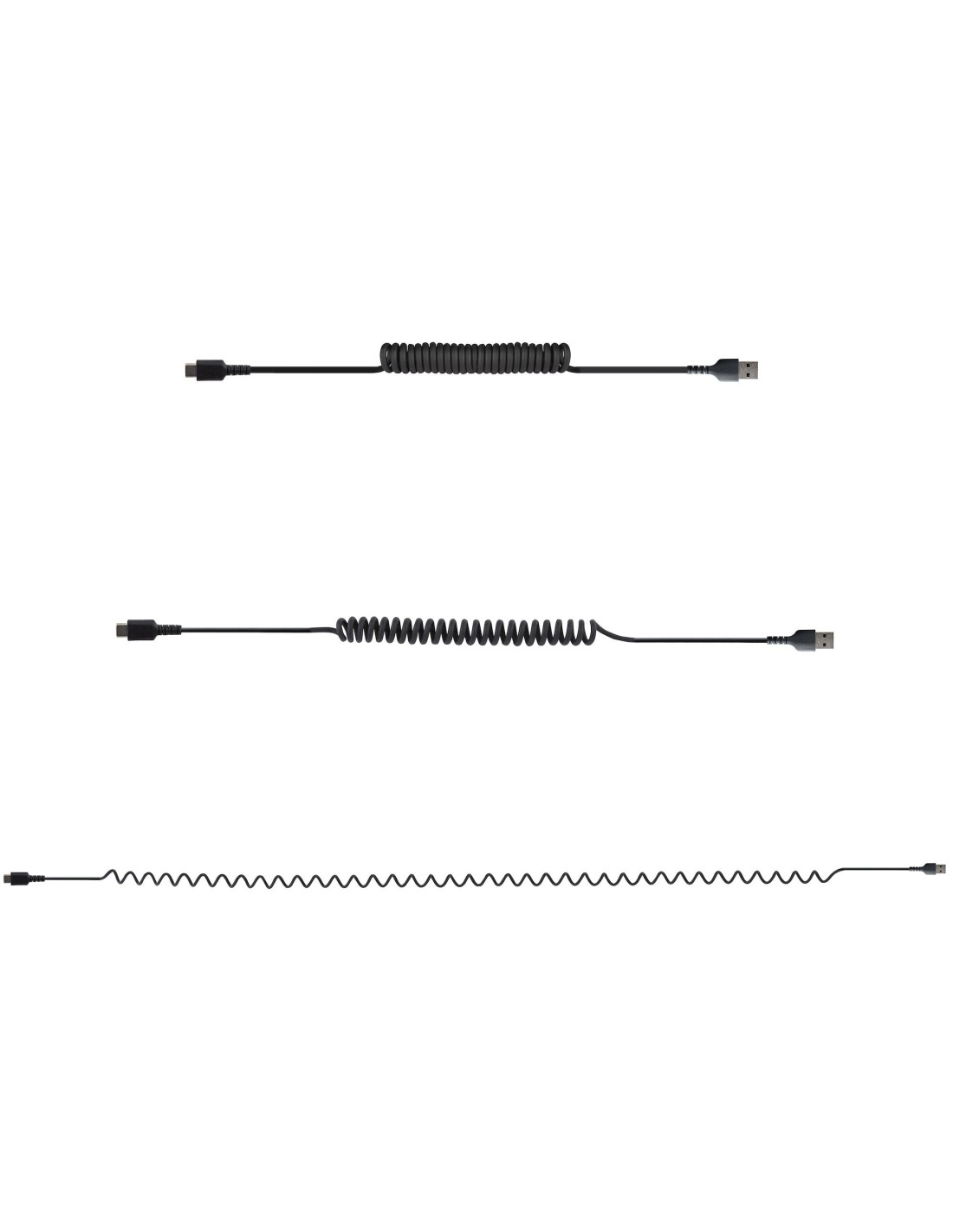 StarTech.com Cable de 1m de Carga USB A a USB C, Cable USB Tipo C Rizado de Carga Rápida y Servicio Pesado, Cable USB 2.0 A a US