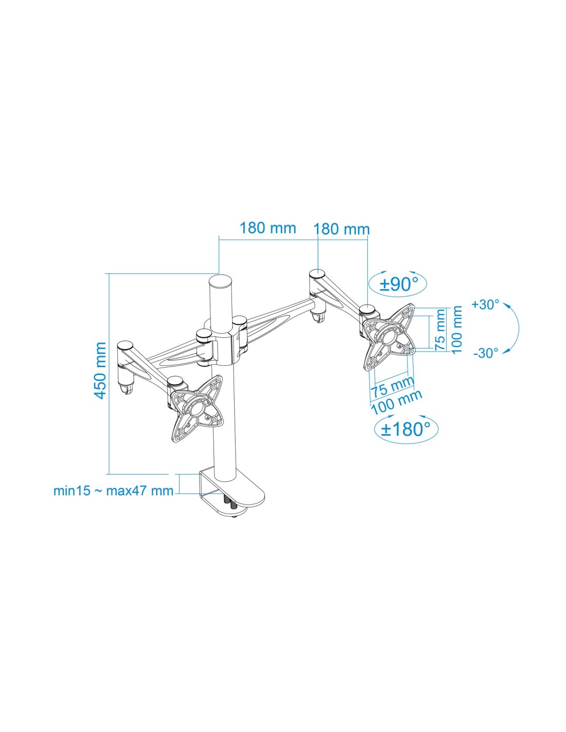 TooQ SOPORTE DE MESA GIRATORIO E INCLINABLE PARA MONITOR / TV LCD, PLASMA (3 PIVOTES, 2 BRAZOS) 13-23, PLATA