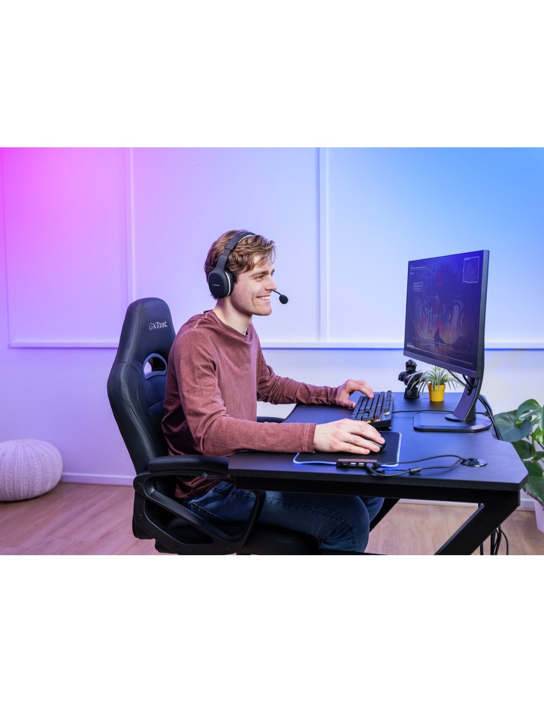 Alfombrilla Trust Gaming Gxt 765 Glide Flex Iluminacion Led Rgb 4 Puertos Usb 350x250mm Color Negro 23646