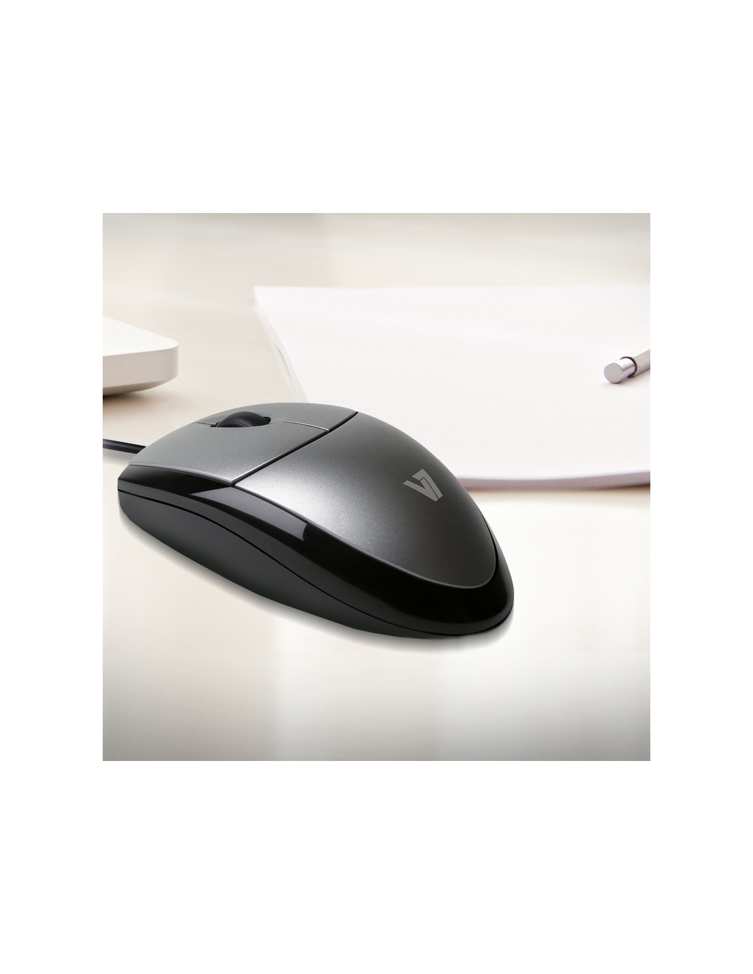 V7 Mouse Í?ptico USB 1000 DPI LED Negro, Plata