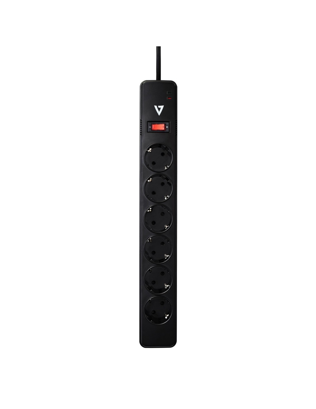 V7 Protector contra sobrevoltajes de 6 tomas Schuko para uso en casa u oficina, cable de 1,8 m, 1050 julios - Negro