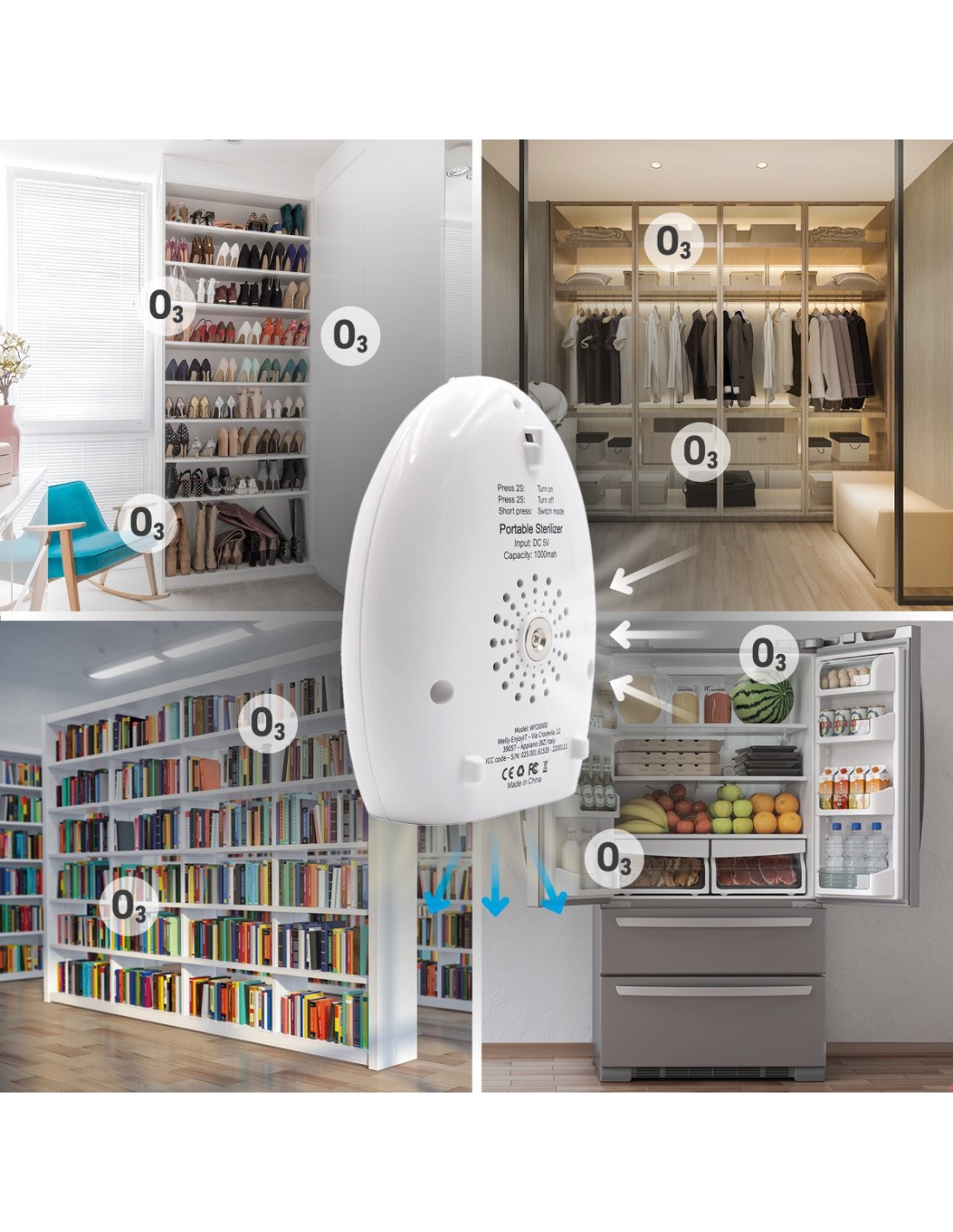 Esterilizador de ozono welly enojy multifuncional portatil con luz nocturna 1000mah blanco WY20000